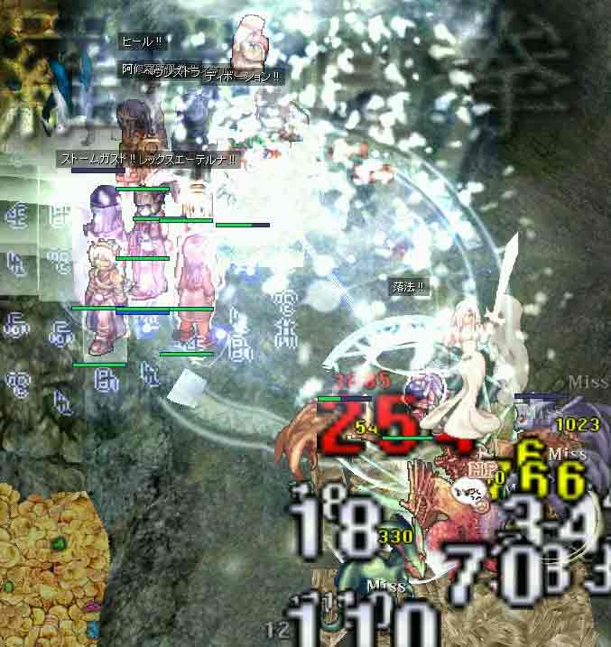 久しぶりに騎士団で狩りです。 もう何ヶ月ぶりだろう。。 やっぱり敵の沸きがあまいですね。 思わず、つっ走ってしまいました。 以前ならこれでMHにつっこんで死ぬところだけど、全然余裕♪ 深淵のBDSをフルで食らってもへっちゃらです。 PTはSSの通り、 教授・プリ・スナイパーの3人ですね それにしてもDSってあんなに連射できたんだね。 殲滅が早いのなんの、 ず~っと前に修正きて連射できなくなったんじゃなかったけな、 亀島パッチ辺りだっけ おかげで思ったよりEXPを稼げました。 大体2%くらい上がったのかな 俺の仕事は、 簡易前衛と共闘とSP補充 対深淵の時と囲まれつつSPを補充するときはSWを張るって感じですね。 あとのスキルは使うまでもありませんでした。 だいたい、スナイパーの殲滅が早すぎるんだな! 今回は久しぶりの移動狩りってのもなかなか楽しめたね。 騎士団だとたまに深淵に出くわすのがいい感じ。 リヒ3の移動狩りとかもやってみたいなぁ