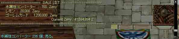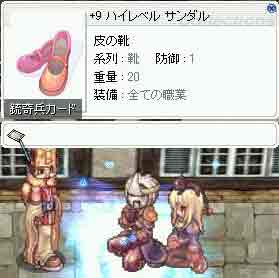 ついに、買い戻すことに成功しました><b +9サンダルが売っているという情報を頂き、手元に40Mくらいしかなかったので、なくならないように10M借りて買いました。 ほんと助かりましたm(_)m あと、銃器兵cが売ってなかったので、 もしやと思い溜まり場に行って見ると案の定SSのアサシン君が持ってましたb 今はコンバーターの材料を買い込んだため持ち合わせがありませんが、 借りた10Mはすぐに返せると思いますのでお待ちください。 ベリットシューズも借りっぱなしだったけど、とっても助かりました><b 今、銃器+ロッダcでHPが10kを超えたところです。 さっそくGvにもっていこー♪