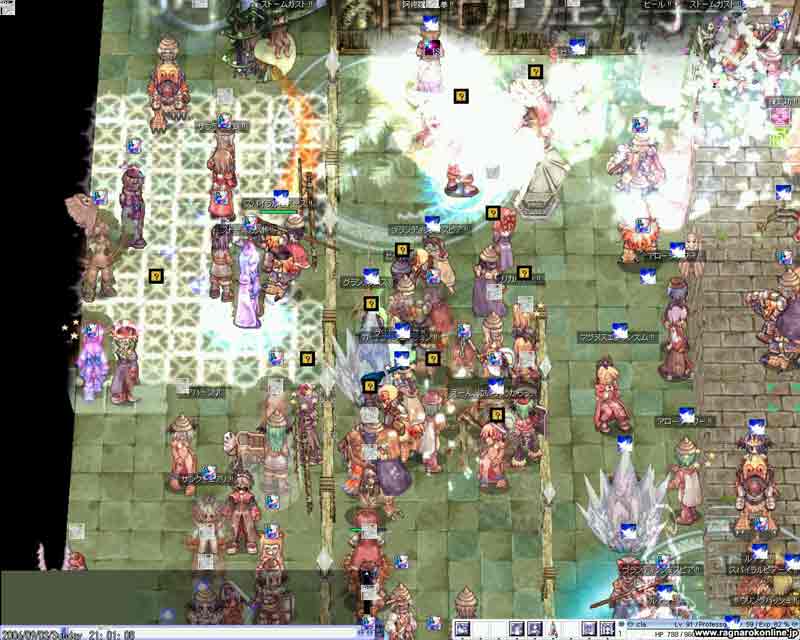 とくにV方面 もうね、ファミコンかと思いましたよ そうじゃなくても、うちのPC・・SS取るとしばらく止まるのに。。 というわけで相変わらずSS取れてませんけどね で、今回はLPを取得してあったのでさっそくGvで使ってみました。 やっぱLPはやりがいがありますね><b 俺のLPなんてLv1だから置いても意味あるのか無いのかわかりませんが、 それでもLP置くだけで気分がいいっす♪ 1.入り口でSG使われてるところにLP!! ぜんぜん範囲足りてねぇ! 無事なの俺だけか!? 2.とりあえず、調子こいてラインに突入 仲間のでかいLPの奥にとりあえず、くっつけてみたり・・。 LPの増築工事って感じでしたw 3.あとはライン突入前に敵が無詠唱で逆攻めしてこないように張ってみたり。。。 これは今度からやめようと思います。 半端に出てるとLPがかかっていないマスを狙われたら対応がしにくいですからね。 なにより、LPが足りていない人達にSGとかが及んだら申し訳なくてクローキングで逃げたくなります(T_T やっぱりせめてLv3は欲しいなと思いました。 話は変わりますが、今回ゴスEMCテコンと対峙することがありました。 防衛していたときですね。 ドリフの忍者コントのような状態で蜘蛛を撃ってもすでにその座標にはいなくて見失ったりとかしましたが、追い掛け回してなんとか阻止。 といってもいつの間にか別の潜伏者がいたのでエンペ割られて終了です。 テコン系は蜘蛛で貼り付けてスペルブレイカーをしていれば、タイリギもノビティギもできないので捕まえられます。 これをやりつつSCで石化させて阿修羅すればOKですね。 ちなみにテコンは「あれ」を装備していましたが、キンゴキでもスペルブレイカーと蜘蛛の効果は効きます。 今回は超重くてSCをSCで解除しちまったりして倒せなかったのが悔やまれました。 あと、とりあえずERで壁際に敵を発見したときは反射的にスペルブレイカーをやるべきですね。 EMCをすでに詠唱している場合この詠唱は画面外から来たキャラには見えません。 なのでこういう状況の敵を見つけたら迷わずスペルブレイクです。 テコン戦でもこれで阻止することに成功しました。 最後にバードの新スキル「パンボイス」について、 これを使っている敵がいて見事に混乱にかかりました。 スキルの説明を見るとそんなに脅威的な感じは受けないけど、どうなんだろう 混乱の効果事態は脅威だけどね 最近はVITも高まって状態異常は睡眠と混乱くらいしかかかりませんが、混乱が怖いので緑ポーションは持ち歩いています。 混乱の何が怖いって、 かかってもしばらくは「ラグかな?」としか思わないところです。 今回はパンボイスを使っているキャラがいたのですぐにわかりましたが、 これが混乱武器によるものだったら気づかなかったかもしれません。 特にラグのひどい状況では気づかない可能性も高くなります。 しかも混乱では前に進めないのでとても困りますね。 というような感じでしたが、 とりあえずGvが軽くなることと、うちのPCが強くなることをせつに望みます(T_T PR